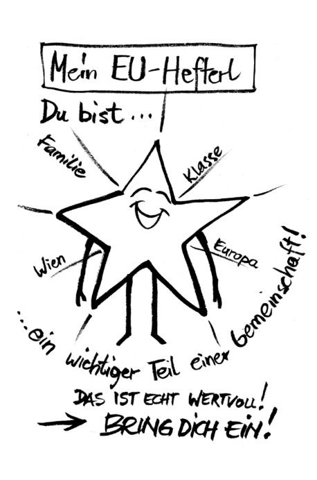 Das bei den jungen Bürger*innen, - und auch Lehrer*innen -, sehr beliebte Mein EU-Hefterl kann hier mit einer Faltanleitung kostenlos heruntergeladen werden.